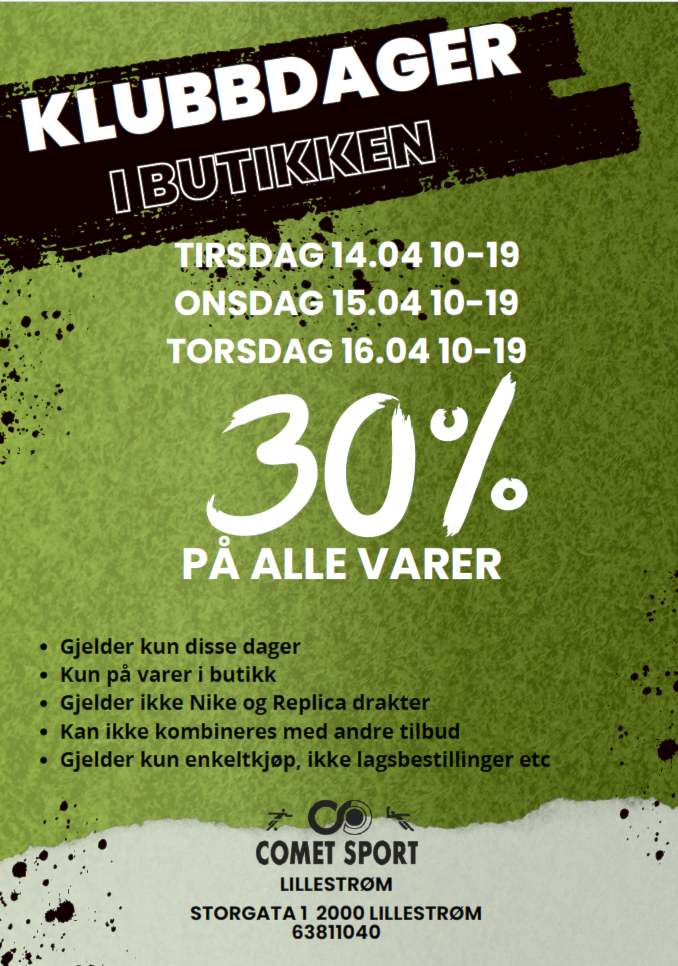 Comet Sport inviterer til klubbdager i butikken i Lillestrøm tirsdag 14. til torsdag 16. april.